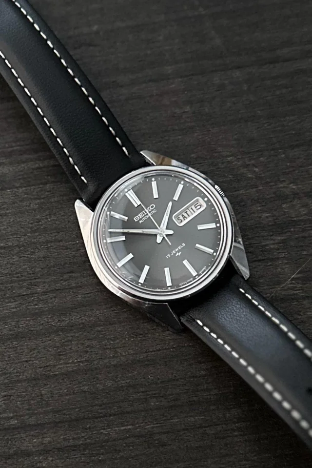 This is a Seiko 7006-8000 automatic watch from the 1970s, featuring the reliable 17-jewel 7006A movement with day-date display. Notable for its classic dress watch proportions with applied indices and the distinctive sunburst silver dial treatment that was characteristic of Seiko's mid-range automatic lineup of this era.